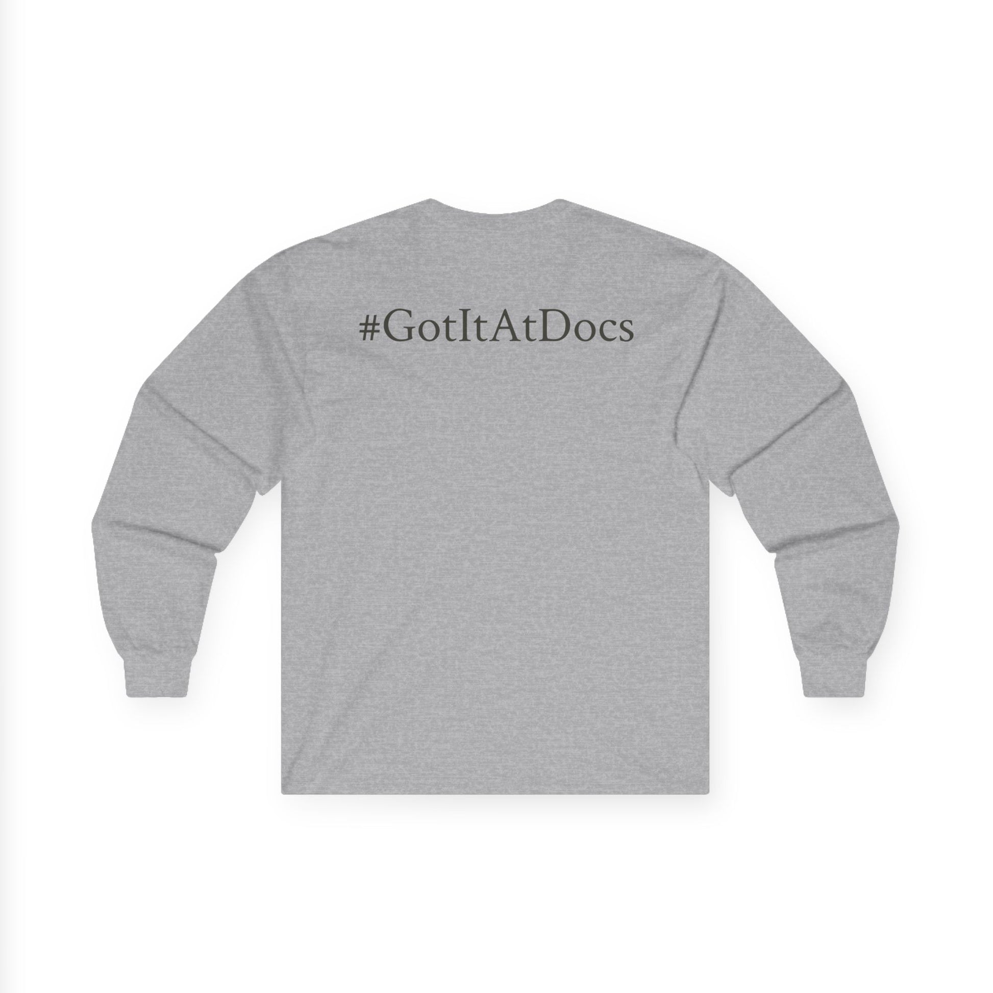 Doc's Open Box Long Sleeve Tee — #GotItAtDocs Casual Logo Shirt